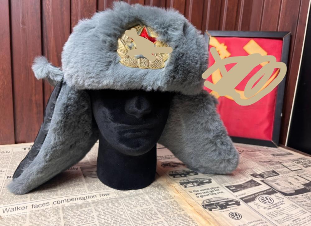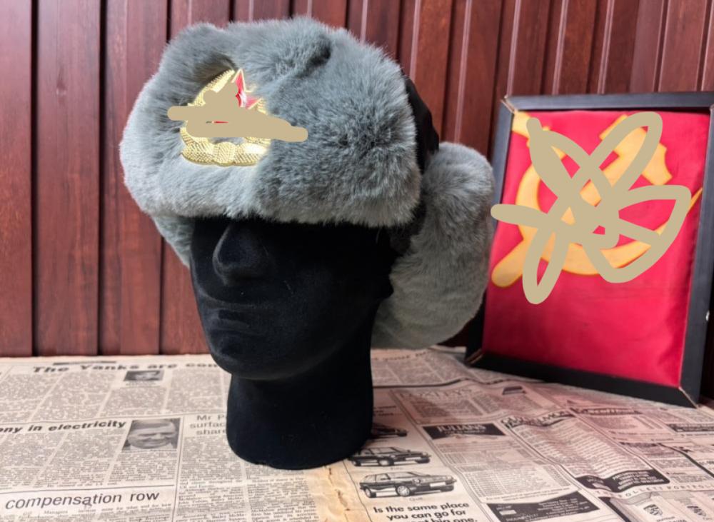 طاقية الشتوية الروسية اسود فرو رصاصي
